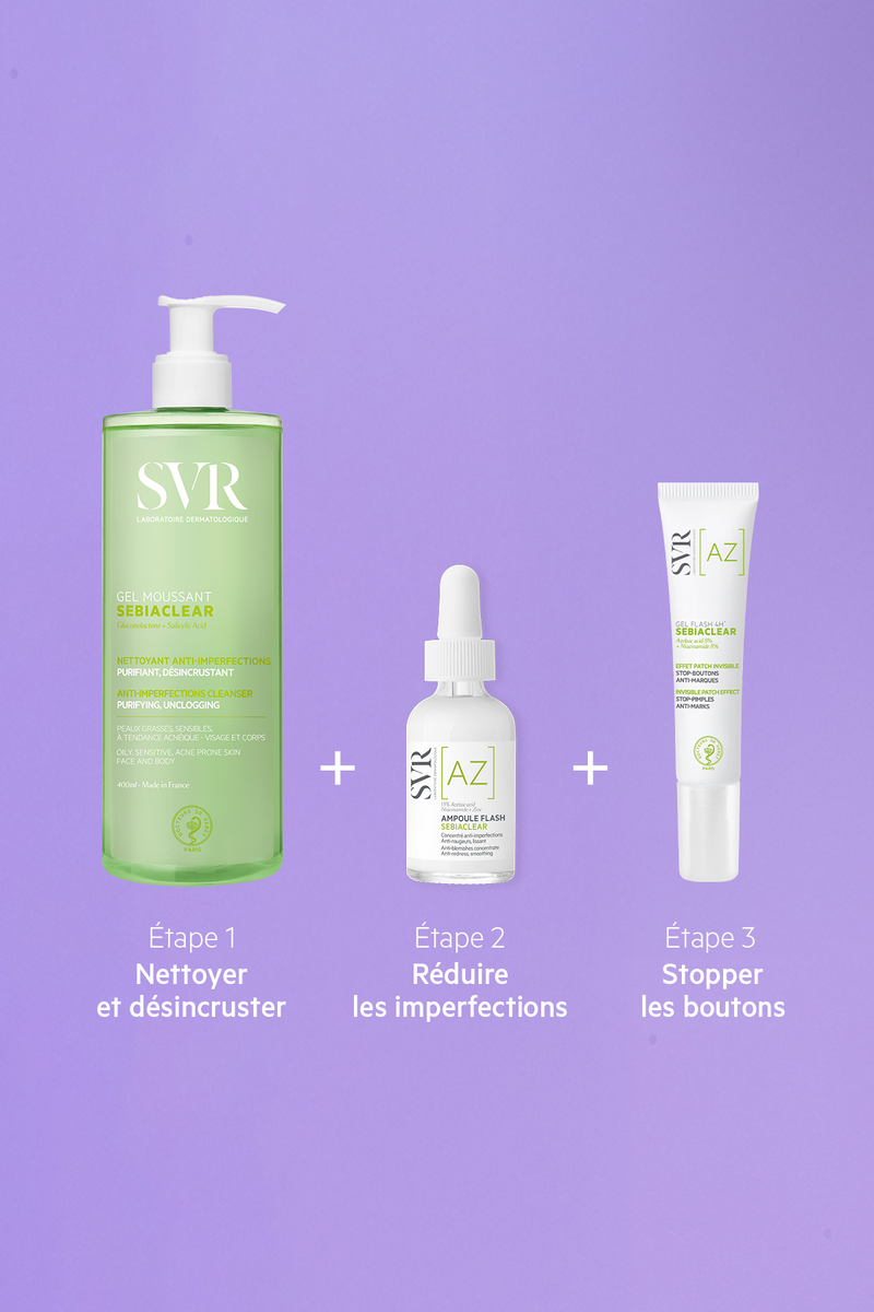 Imperfections, boutons, brillances, points noirs, marques résiduelles… Pour retrouver confiance en vous et en votre peau, optez pour Sebiaclear, la gamme ultra-efficace qui aide à éliminer boutons, points noirs et excès de sébum même sur les peaux les plus sensibles sans faire de compromis sur la tolérance. Surconcentrée en actifs dermatologiques, en seulement 7 jours, Sebiaclear offre des résultats visibles, même sur les peaux sensibles. Qui ne tente rien n’a rien ! 💚